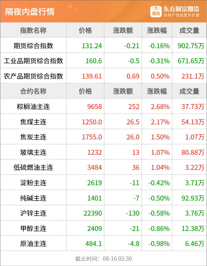 浦汇FxPro:东方财富期货早餐 8月18日 周一