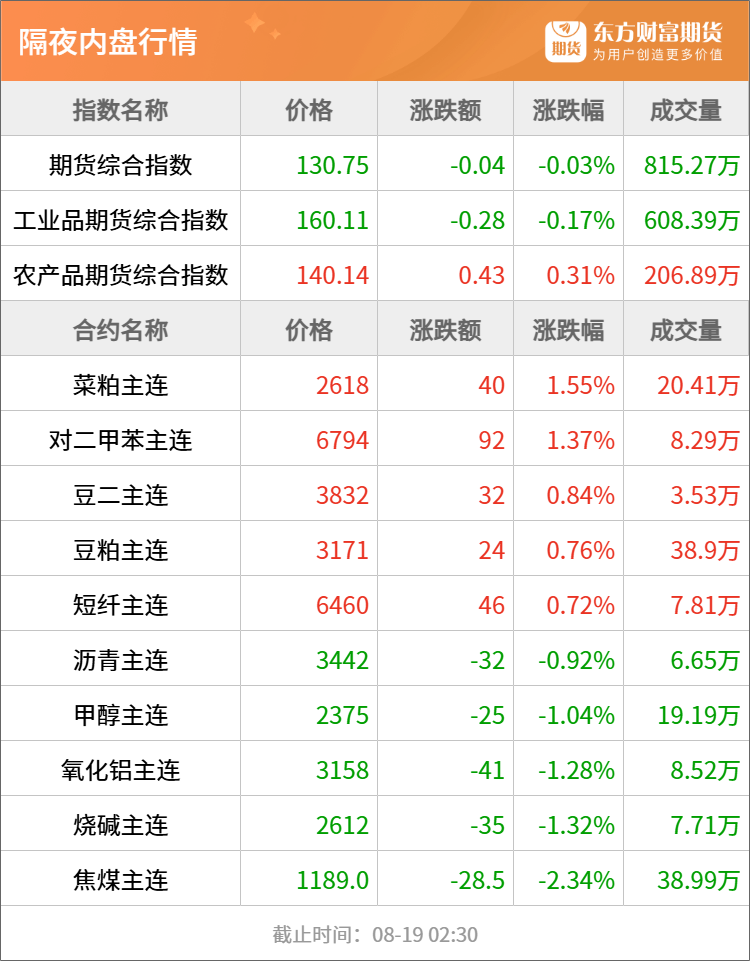 浦汇FxPro:东方财富期货早餐 8月19日 周二