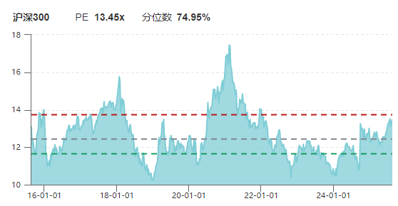 在银行等权重的带领下,目前A股整体市盈率为21.09倍,处于近十年历史分位数的82.78%。