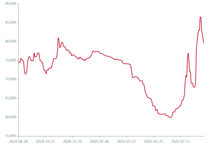 锂盐供应端产能收缩的预期,让碳酸锂价格止跌回升。碳酸锂价格从2025年上半年低点时的5.83万元/吨涨到近期的8万元/吨,这或将直接影响到矿端生态,并间接推动矿商利润修复与供应响应。