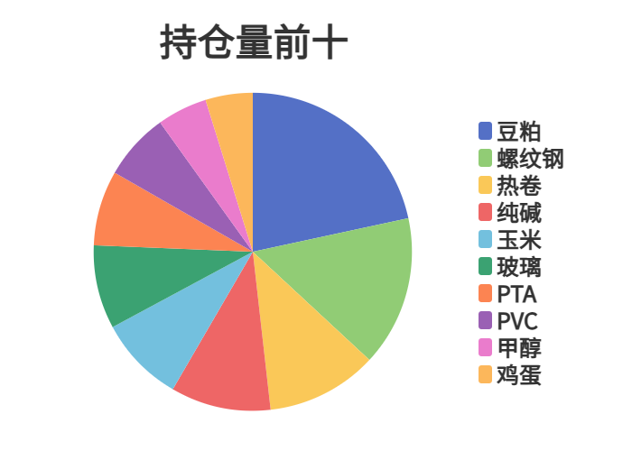 市场成交量前十和持仓量前十如下图所示: