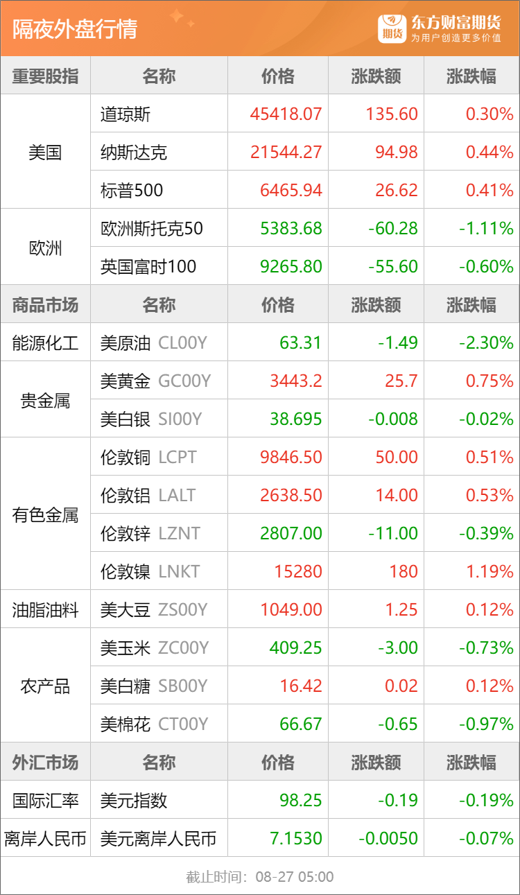 浦汇FxPro:东方财富期货早餐 8月27日 周三