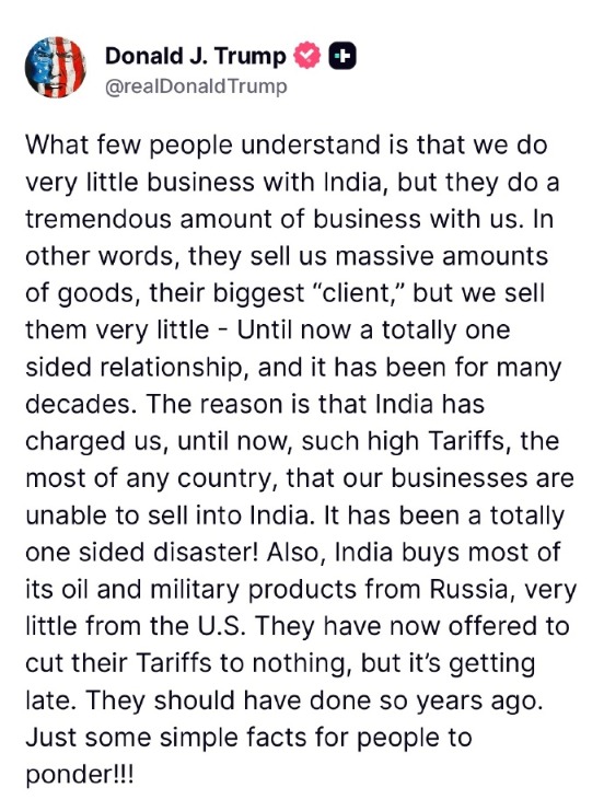 大家好,简单关注一下特朗普跟印度关税的新消息。