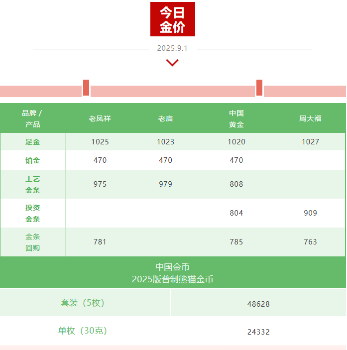 国内足金饰品报价大多在千元上方。周生生足金饰品价格为1025元/克,周大福足金价格为1027元/克,老庙足金饰品价格为1023元/克。