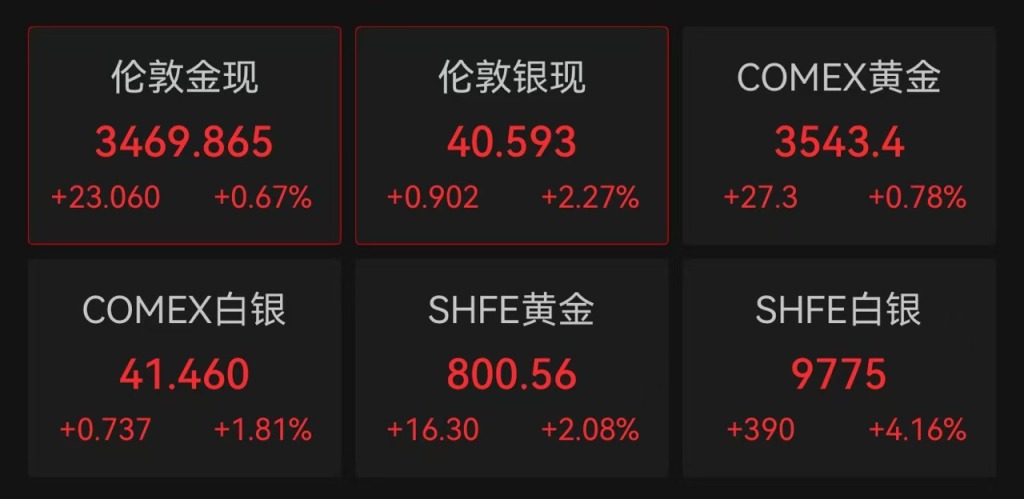 同日,伦敦现货黄金价格同步攀升,最高达3486.16美元/盎司,距今年3500美元的历史高点仅不足1%。