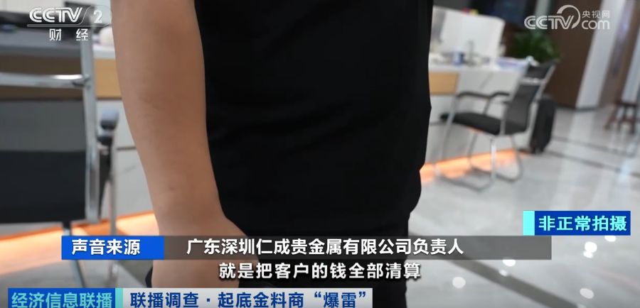 广东深圳仁成贵金属有限公司负责人:“我们也没有跑,打算把客户的钱全部清算,该欠的账都还掉。一直在清算,现在基本上清算完了,这次亏了7000多万元。”