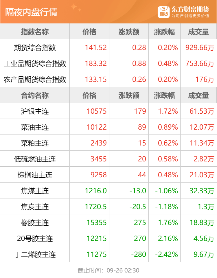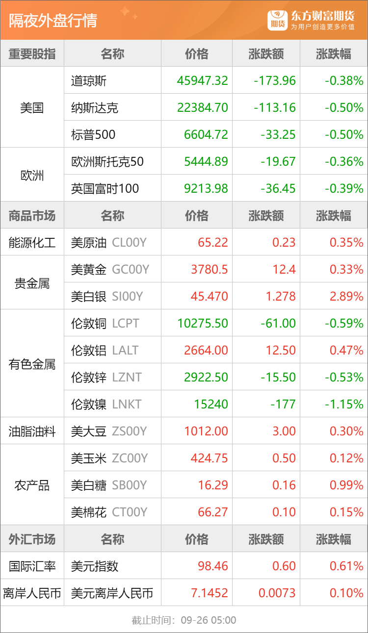 浦汇FxPro:东方财富期货早餐 9月26日 周五