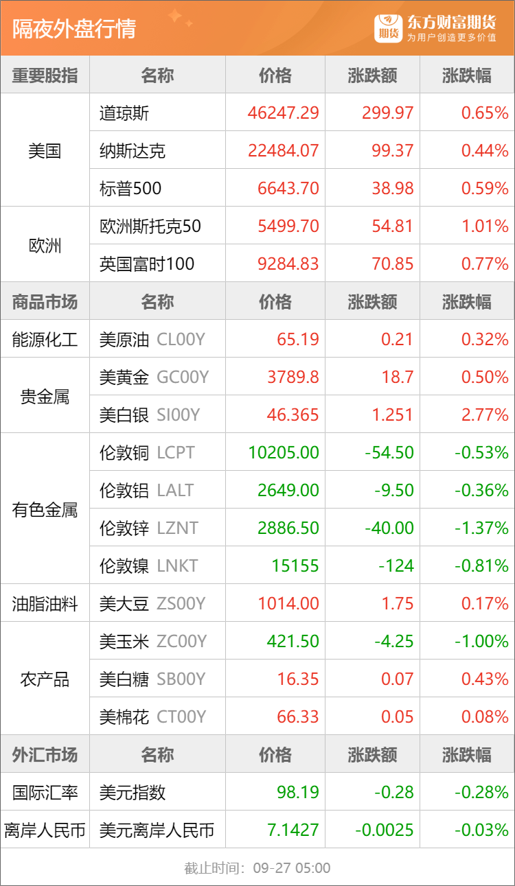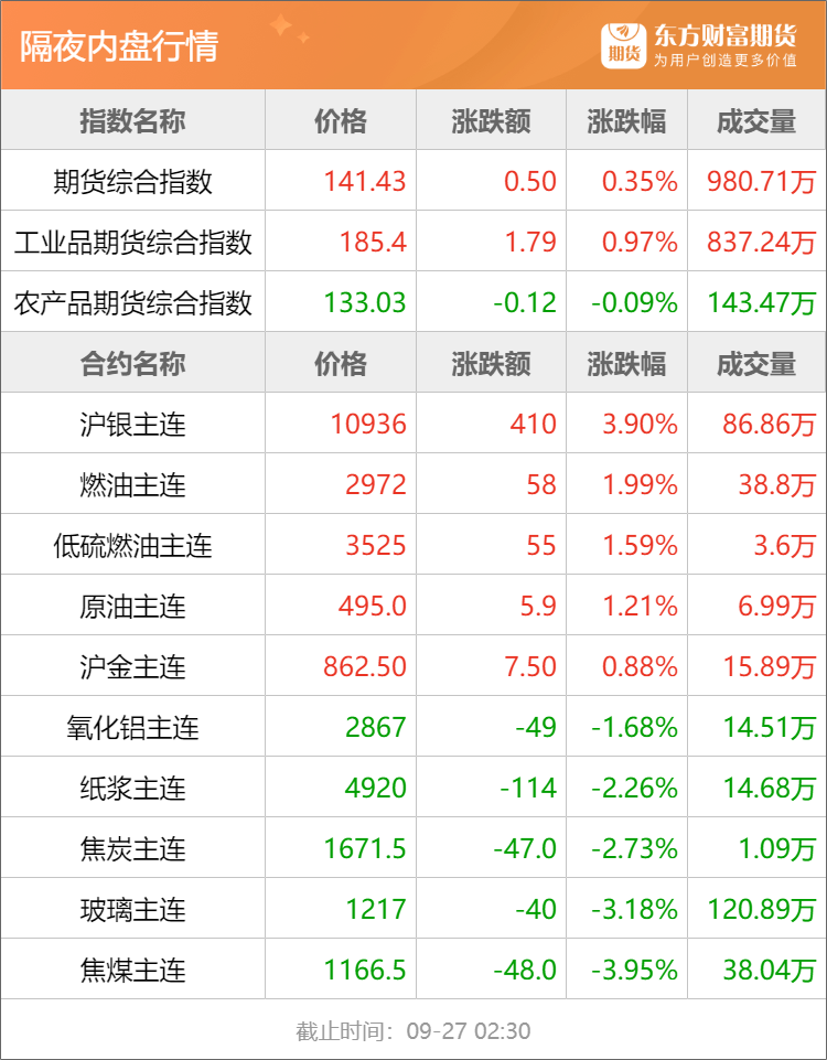 浦汇FxPro:东方财富期货早餐 9月29日 周一