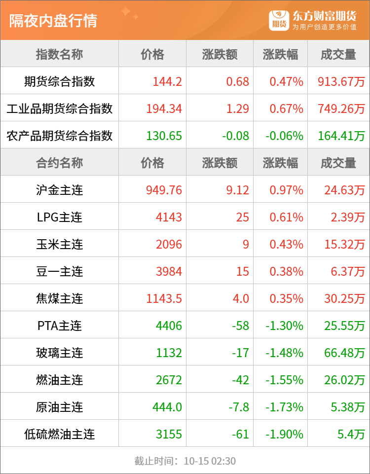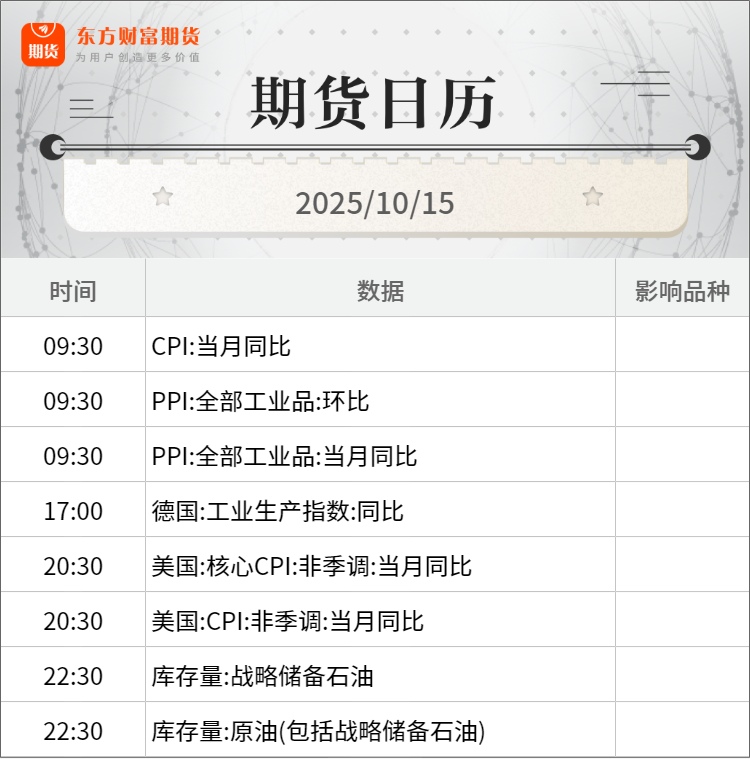 浦汇FxPro:东方财富期货早餐 10月15日 周三