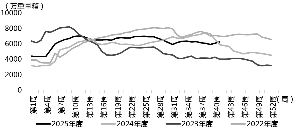 2025年国庆假期后,浮法玻璃库存较9月底增加近6%,而2024年国庆假期后库存则大幅下降。数据显示,2024年10月11日,浮法玻璃库存较2024年9月底下降近20%。由此可见,浮法玻璃行业“银十”开局表现不佳。具体来看,阴雨天气对物流产生负面影响,国庆假期期间浮法玻璃成交量有限,中下游采购积极性不高。尽管多家玻璃企业在假期期间发布涨价函,刺激产销增长,但假期后订单量依然有限,下游深加工企业对高价货源的接受度一般,浮法玻璃库存开始累积。根据隆众资讯数据,截至2025年10月9日,全国浮法玻璃样本企业总库存为6282.4万重量箱,环比增加5.85%,同比增加6.76%,其中,华北浮法玻璃库存环比大幅增加20.63%。
