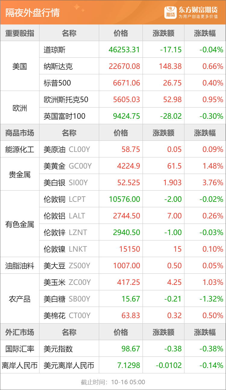 浦汇FxPro:东方财富期货早餐 10月16日 周四