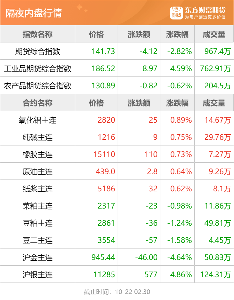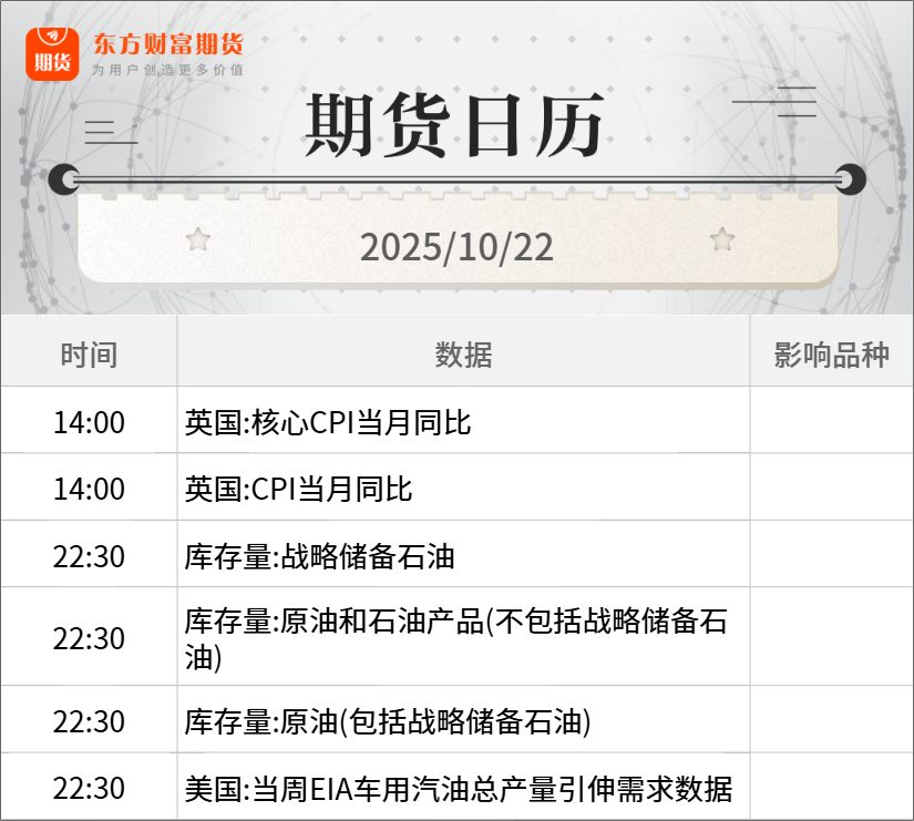 浦汇FxPro:东方财富期货早餐 10月22日 周三