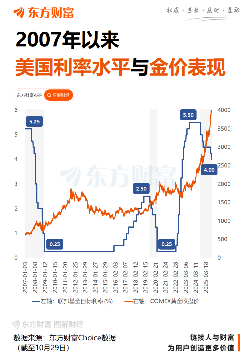 当地时间10月29日,美联储宣布将联邦基金利率目标区间下调25个基点到3.75%至4.00%之间。这是美联储继9月17日降息25个基点后再次降息,也是自2024年9月以来第五次降息。