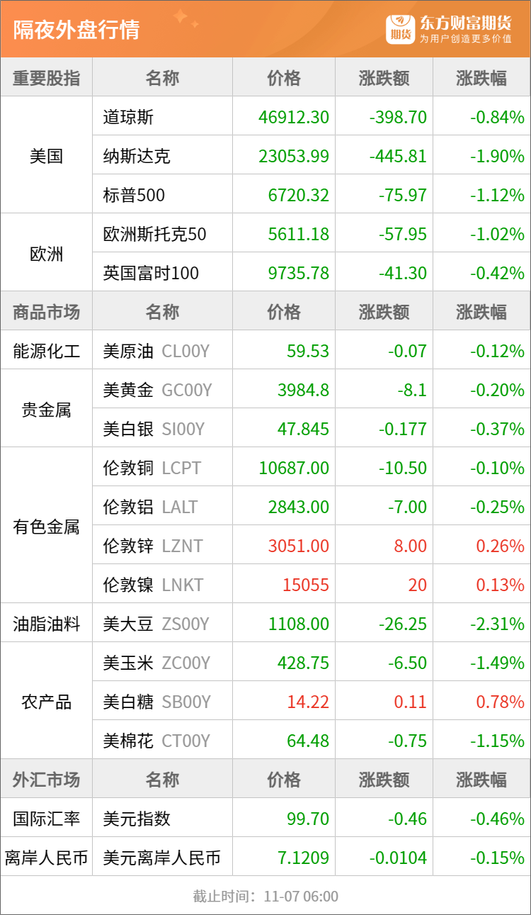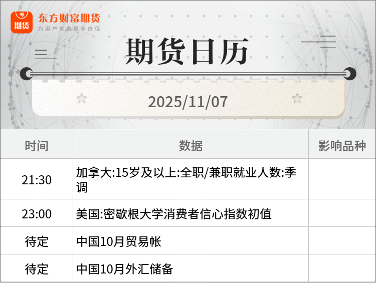 浦汇FxPro:东方财富期货早餐 11月7日 周五