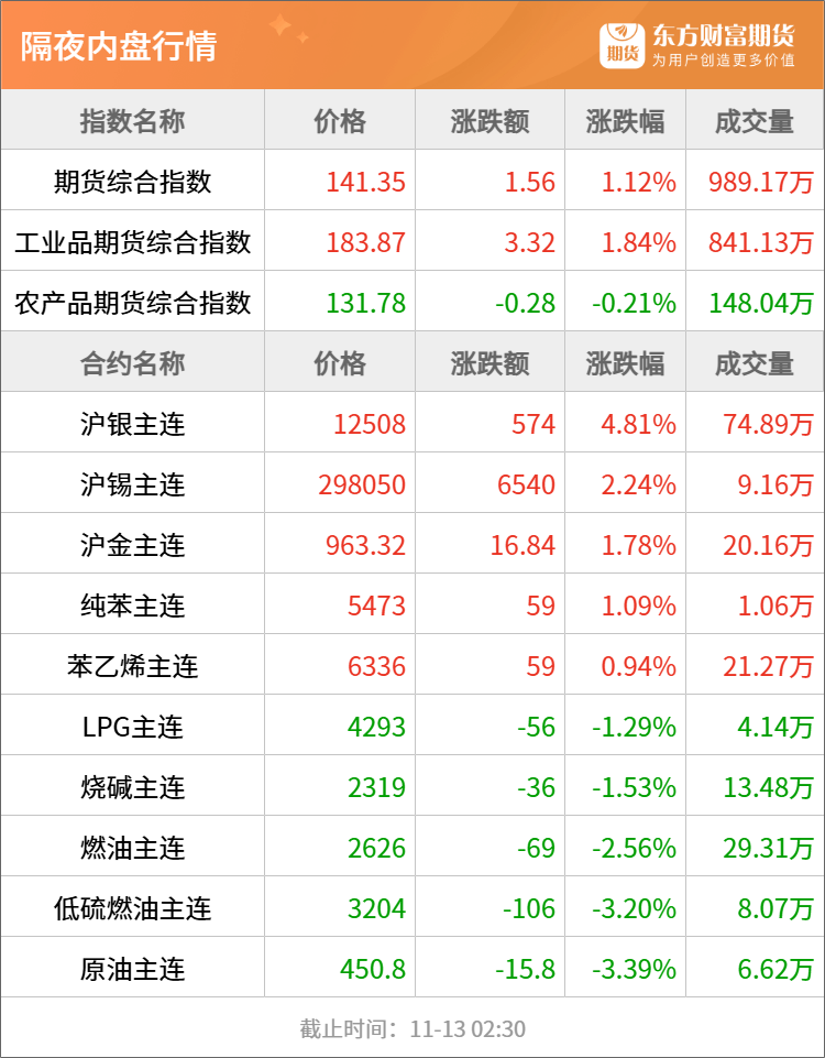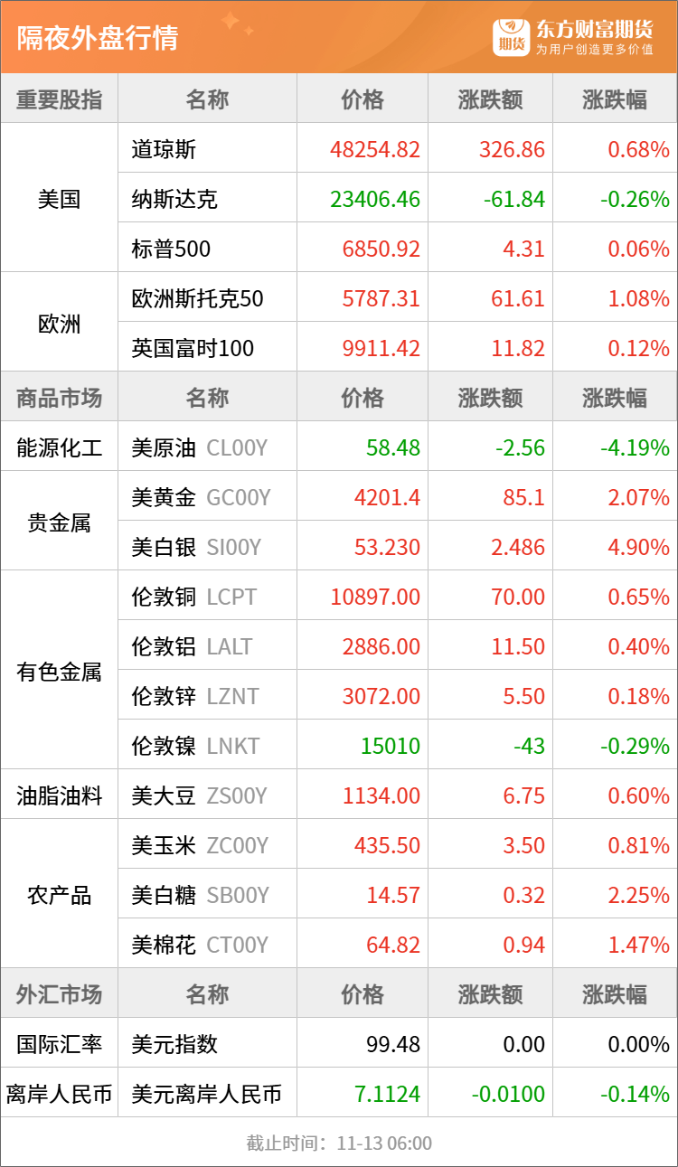 浦汇FxPro:东方财富期货早餐 11月13日 周四