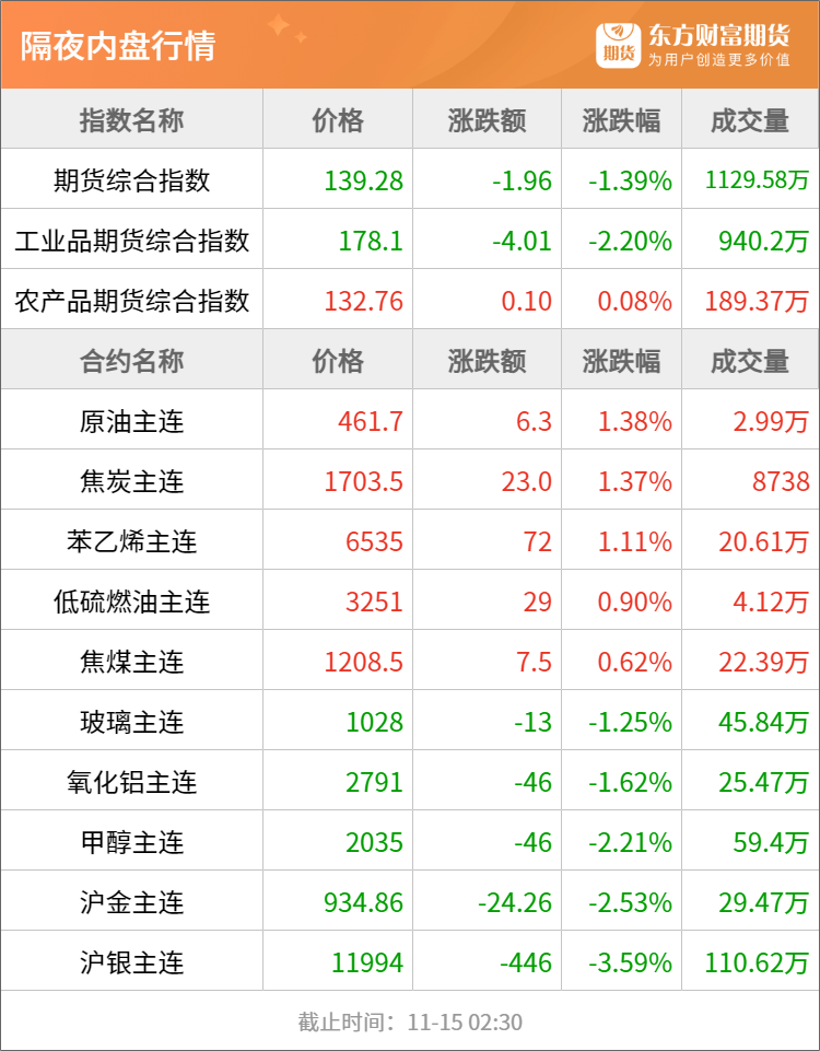 浦汇FxPro:东方财富期货早餐 11月17日 周一