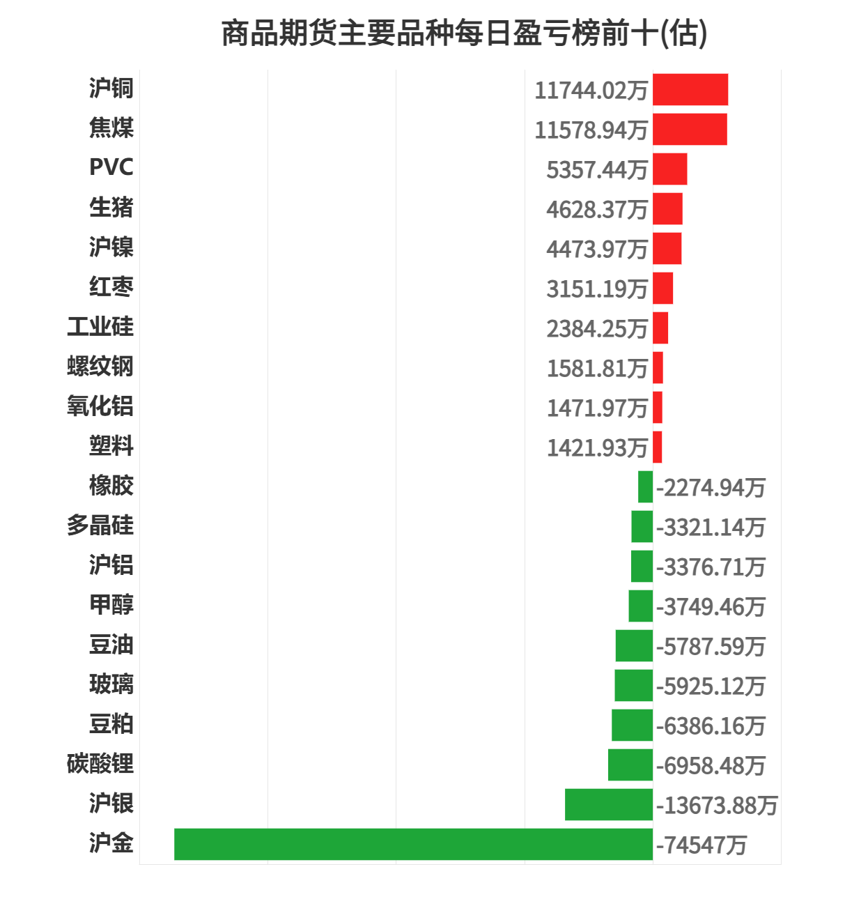 沪金亏损第一,为74547.00万元。