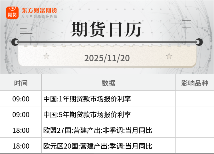 浦汇FxPro:东方财富期货早餐 11月20日 周四