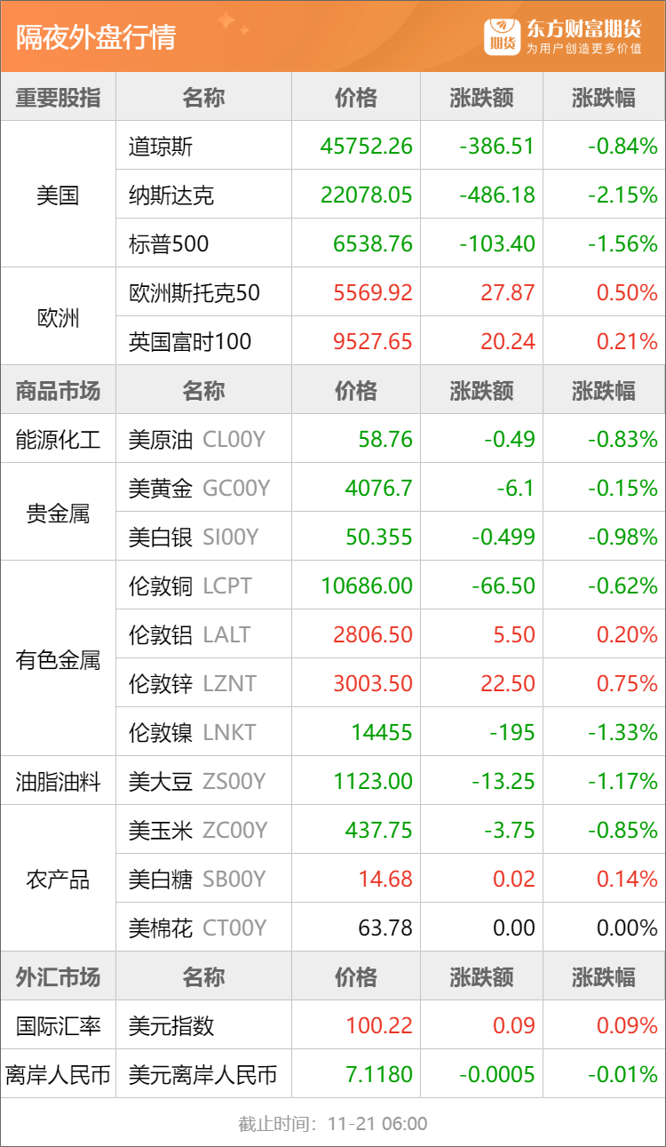 浦汇FxPro:东方财富期货早餐 11月21日 周五
