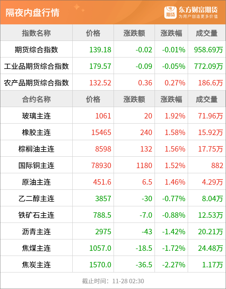 浦汇FxPro:东方财富期货早餐 11月28日 周五
