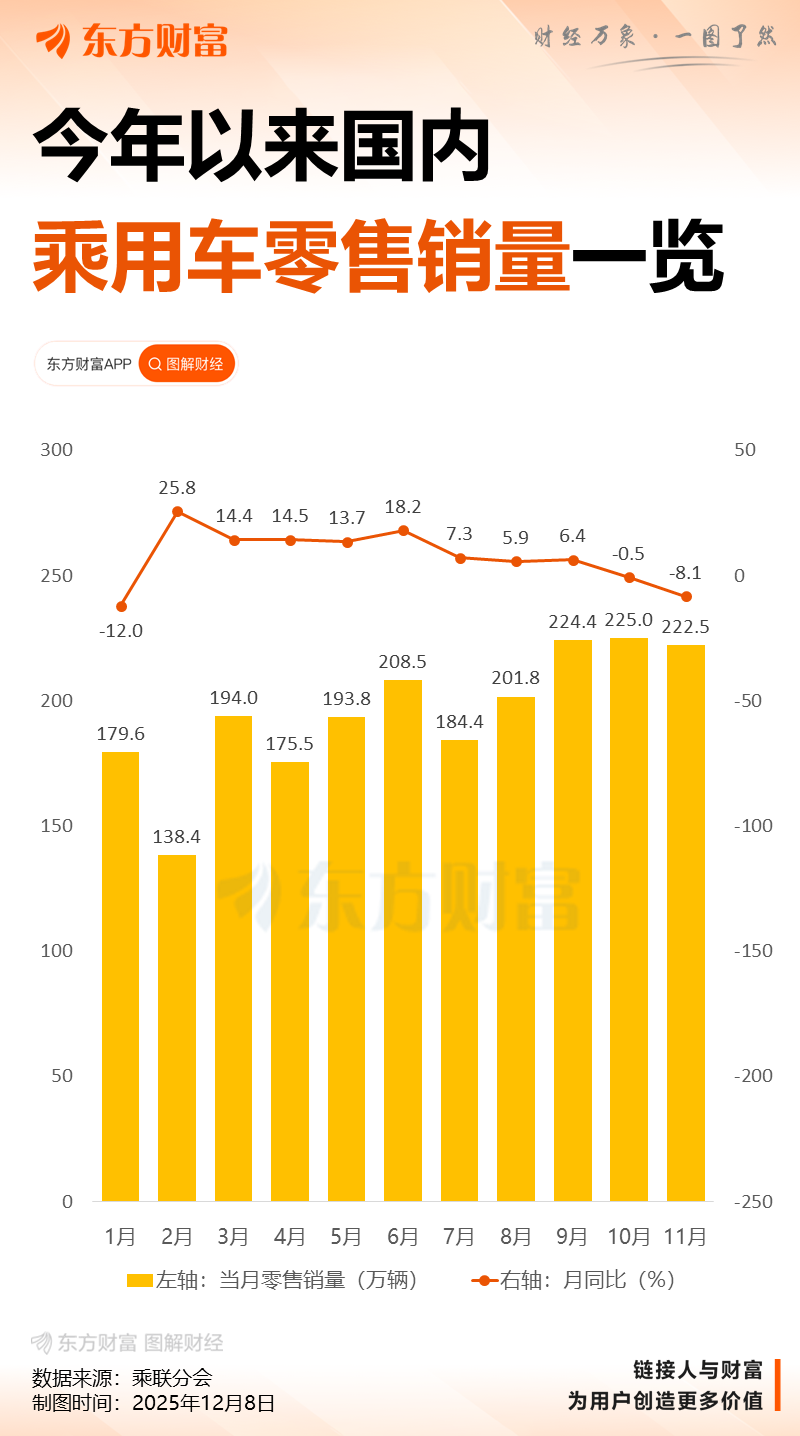 浦汇FxPro:乘联分会:11月全国乘用车市场零售222.5万辆 同比下降8.1%
