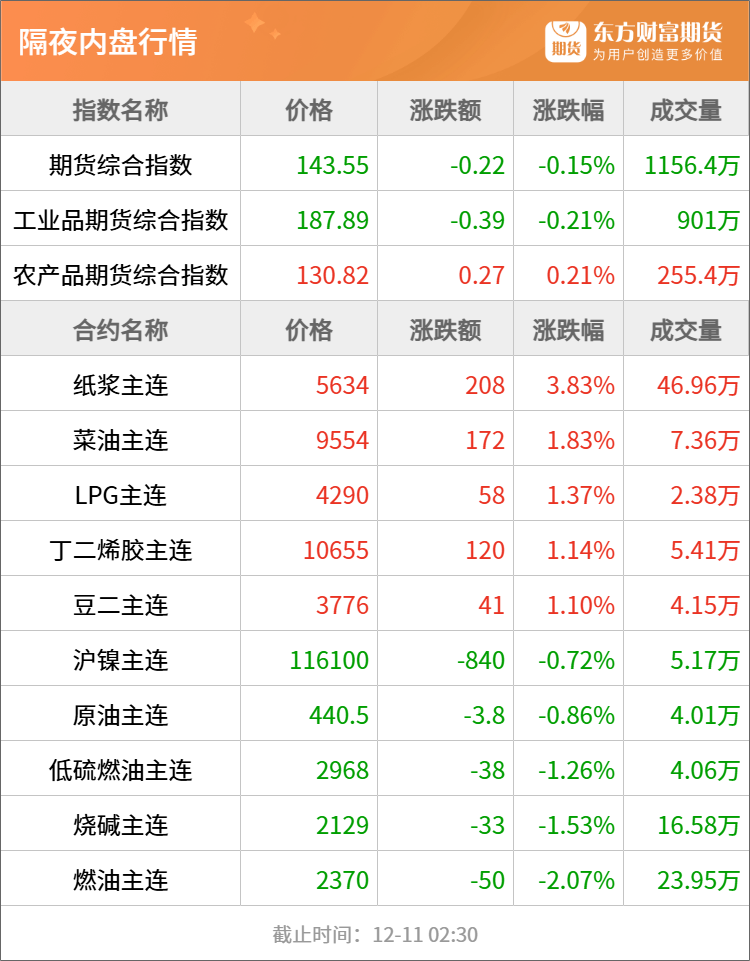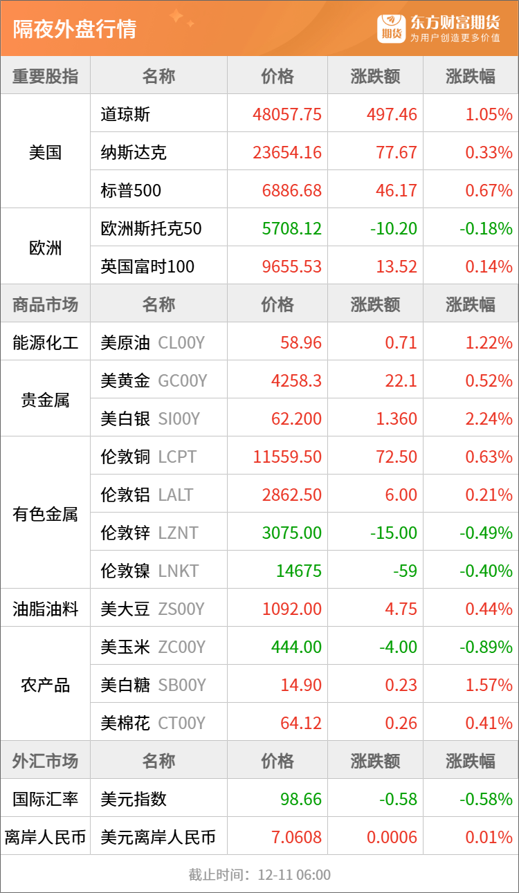 浦汇FxPro:东方财富期货早餐 12月11日 周四