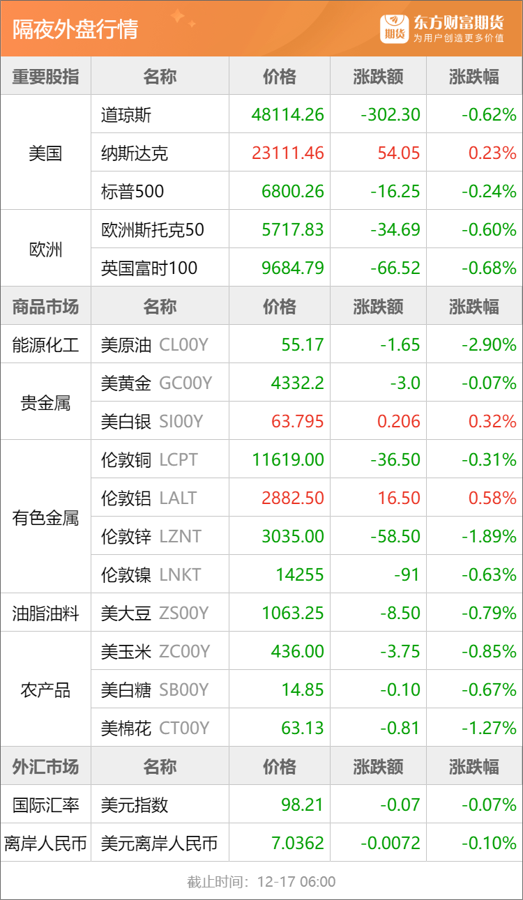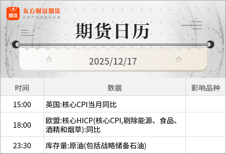 浦汇FxPro:东方财富期货早餐 12月17日 周三