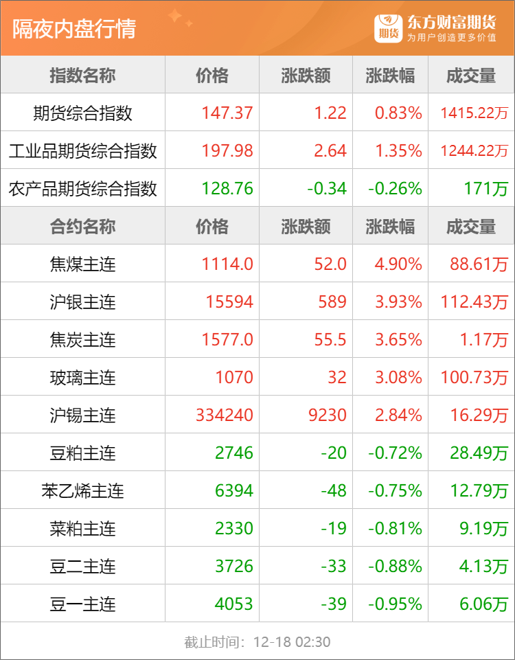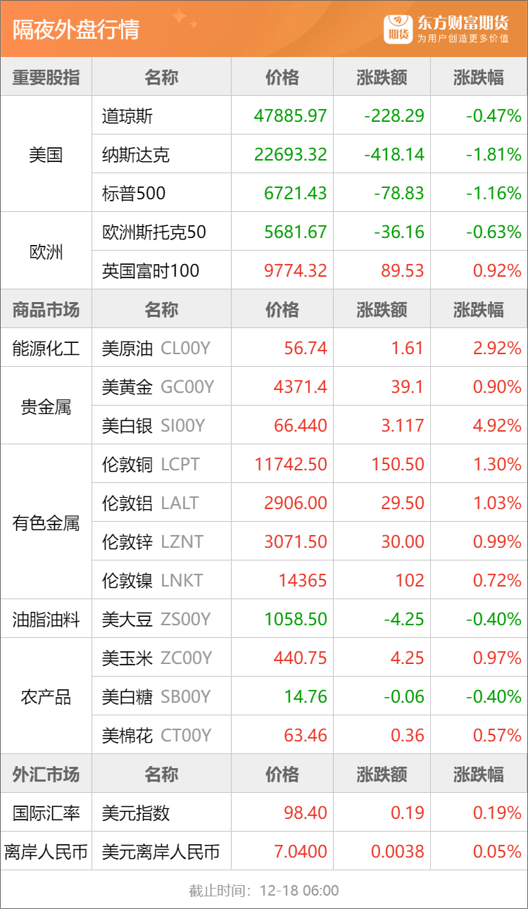 浦汇FxPro:东方财富期货早餐 12月18日 周四