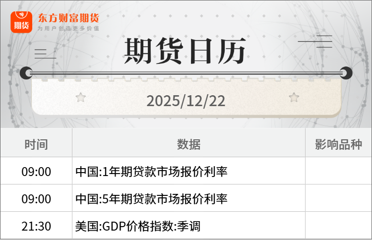 浦汇FxPro:东方财富期货早餐 12月22日 周一