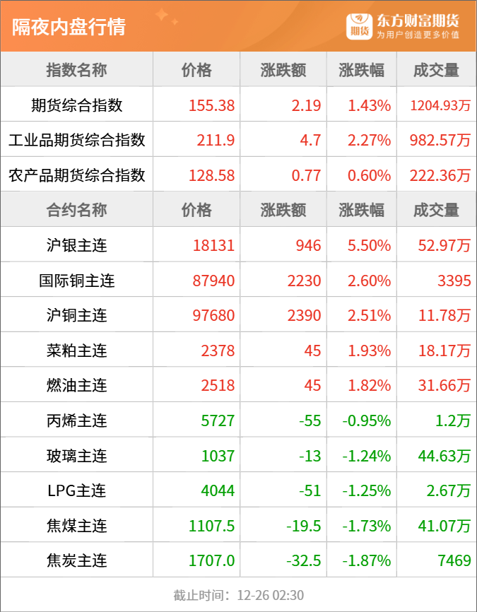 浦汇FxPro:东方财富期货早餐 12月26日 周五
