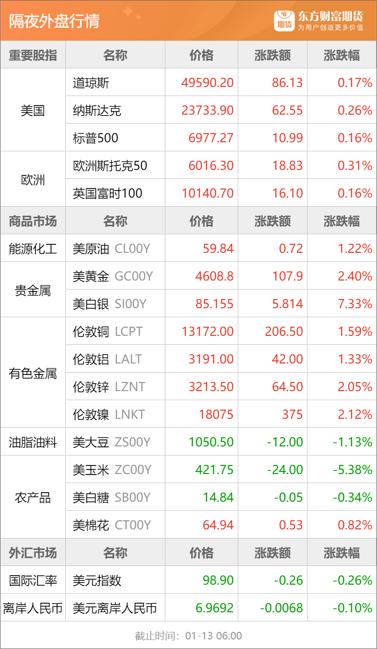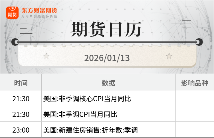 浦汇FxPro:东方财富期货早餐 1月13日 周二