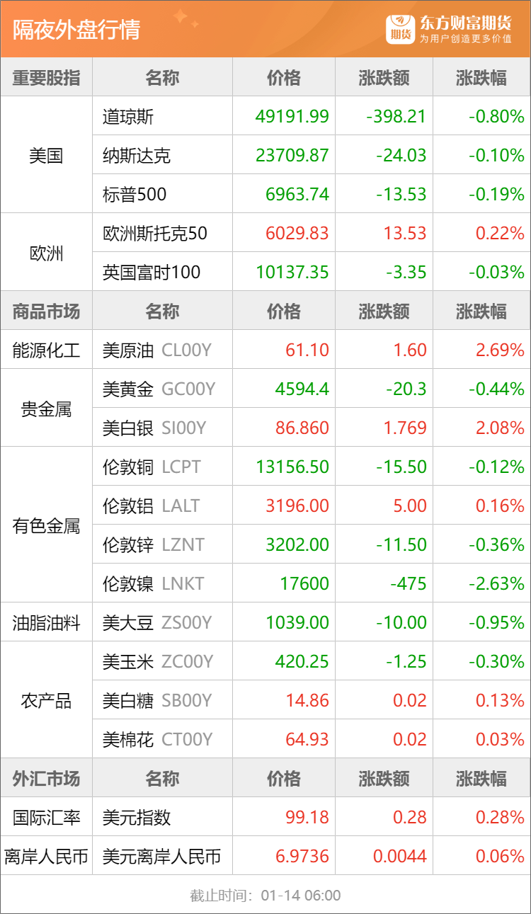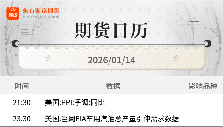 浦汇FxPro:东方财富期货早餐 1月14日 周三